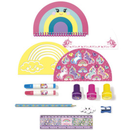 Wow! O super gentuta cu tematica cu unicorni plina cu tot felul de articole de papetarie distractive în culori vesele si cu un creion magic multicolor. Creeaza cele mai frumoase desene cu unicorni si curcubee. Poti folosi gentuta pentru a-ti ...