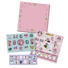 Peste 50 de abtibilduri cu sclipici si un decor inclus pentru a recrea o poveste alaturi de Minnie Mouse!