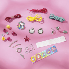 Set creativ cu 2 activitati distractive prin care iti poti crea propriile bratari la moda si o gentuta dragalasa cu unicorni.