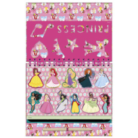 Carte cu activitati creative de razuit si colorat cu printesele din desenele animate Disney, include 10 planse de razuit cu sclipici si 11 de colorat.